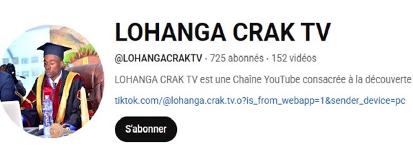 LOHANGA CRAK TV est une Chaîne YouTube consacrée à la découverte et à l’évasion à travers les voyages. la chaîne a pour vocation de réveillé la conscience du peuples et